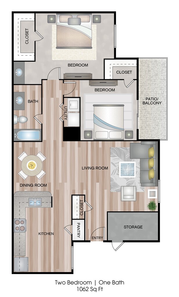 Modelo de apartamento: B1Desde $1,1262 Dormitorios, 1 Baño, 1062 sq ftDisponible November 28, 2025![]()