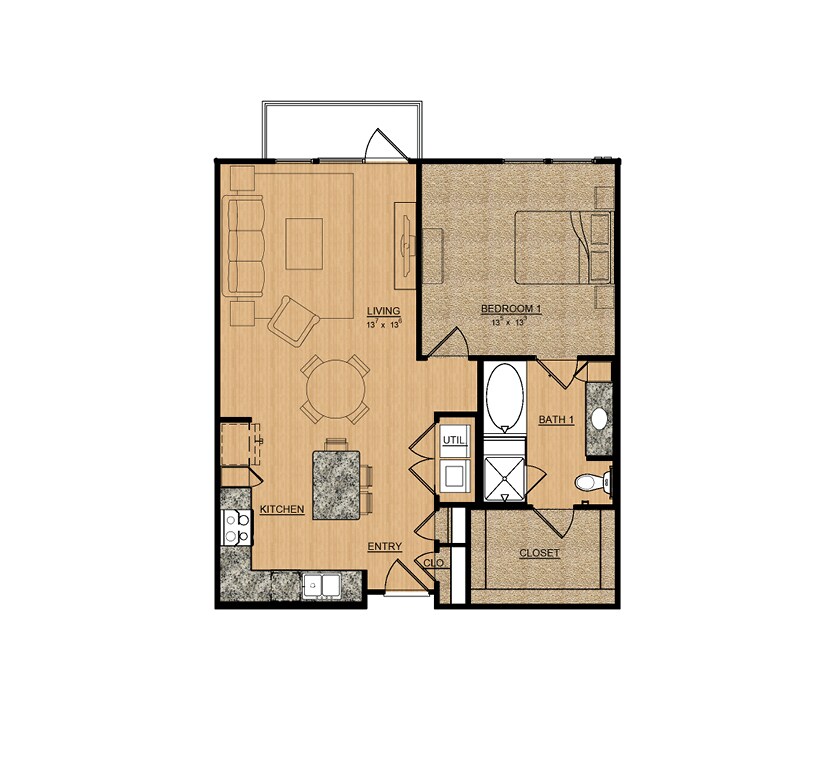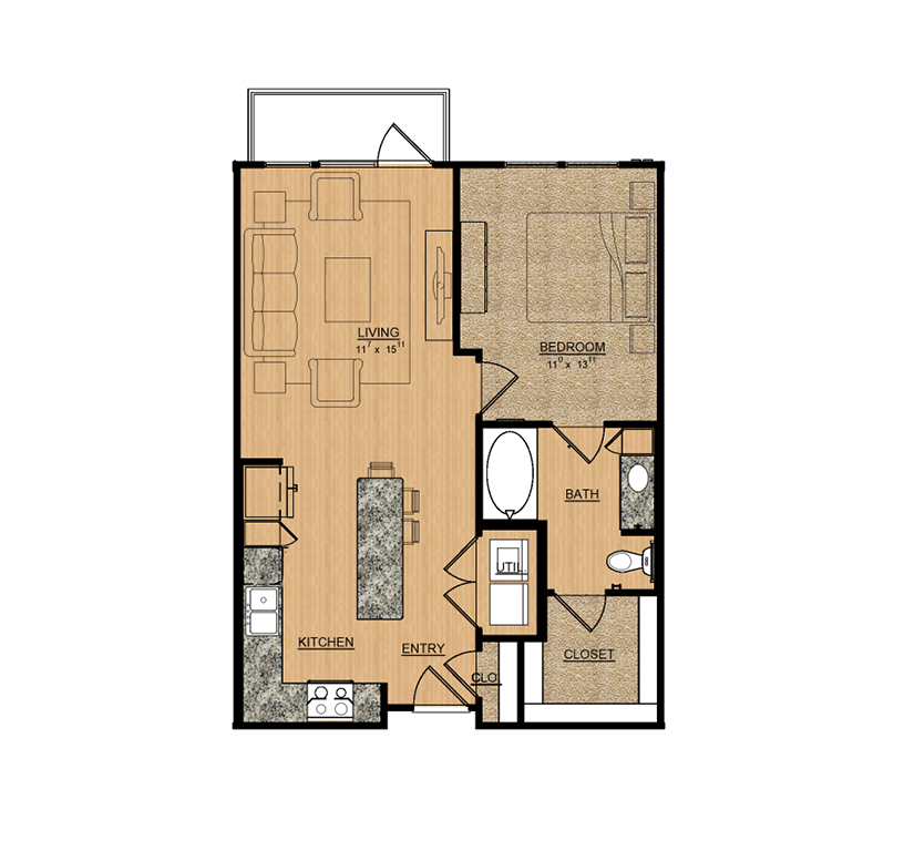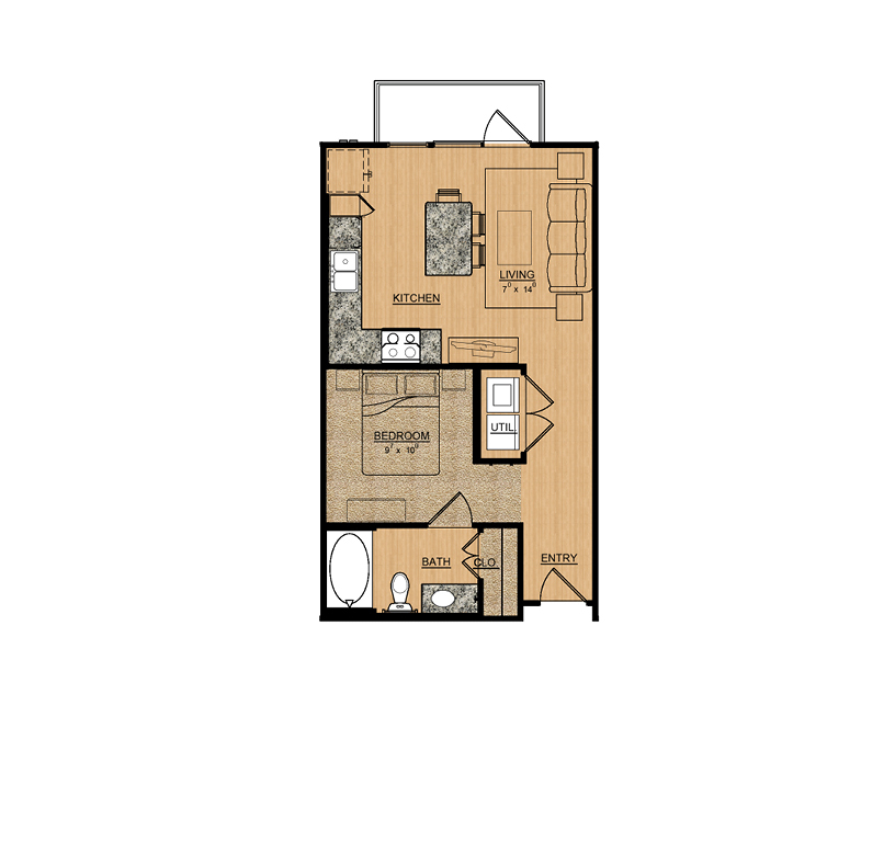 1 Dormitorio, 1 Baño, 868 pies²El más grandeEsta opción tiene las unidades más grandes para este modeloGalería del Modelo