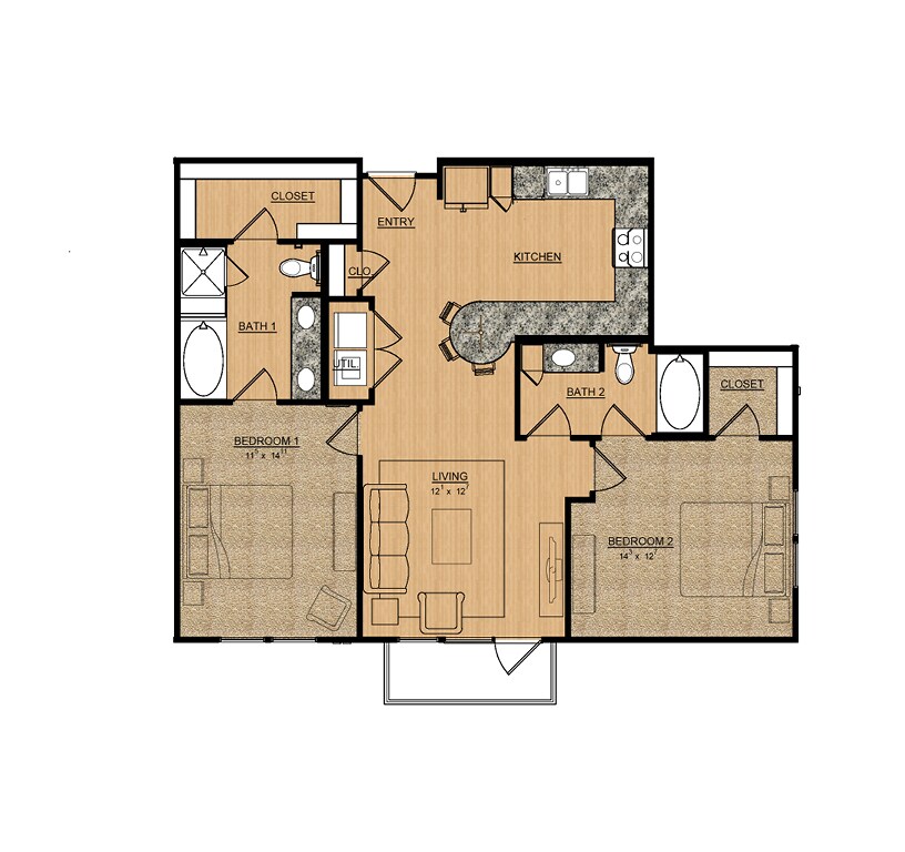 2 Dormitorios, 2 Baños, 1145 pies²Disponible AhoraEl más grandeEsta opción tiene las unidades más grandes para este modeloGalería del Modelo