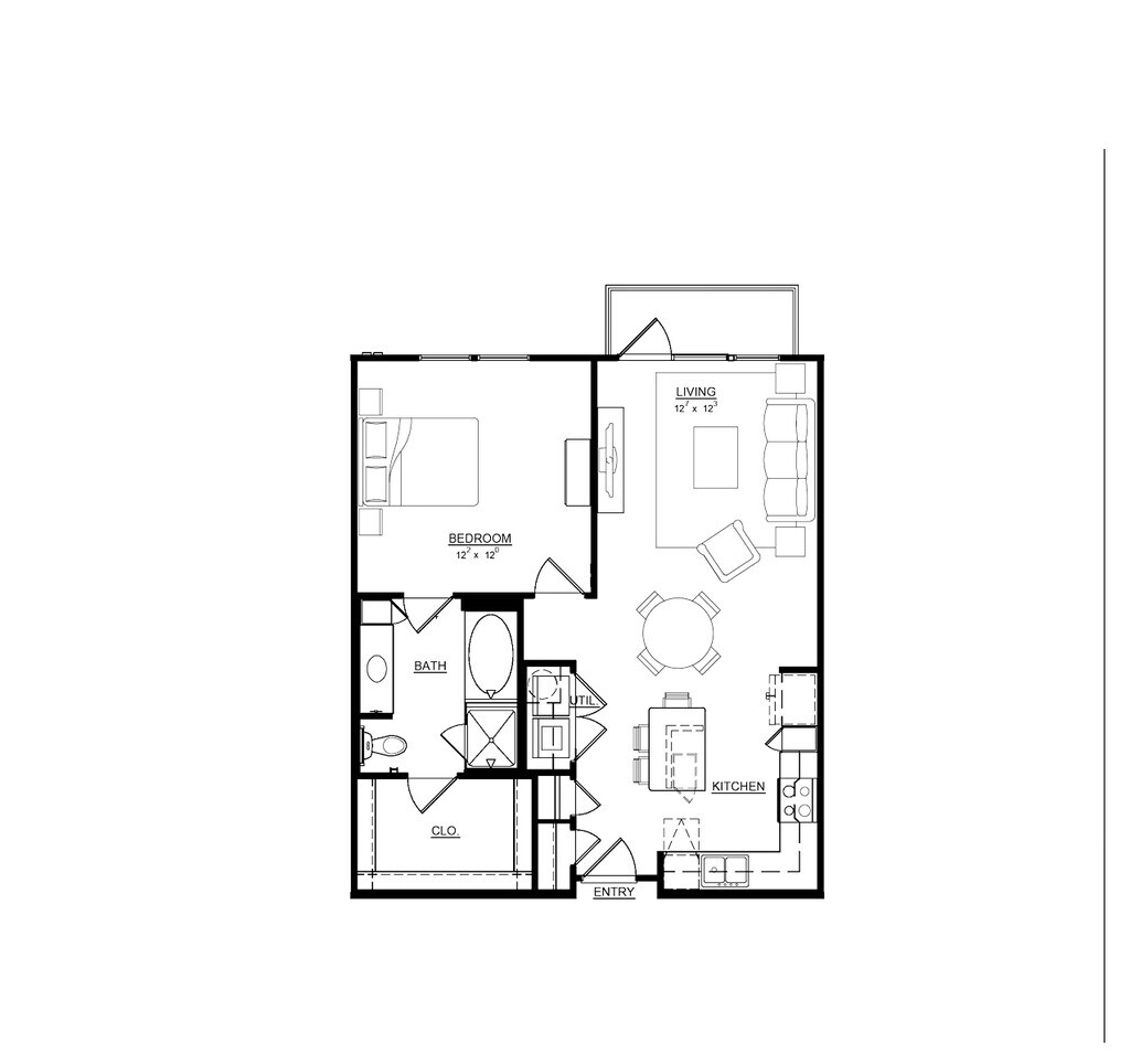 1 Dormitorio, 1 Baño, 743 pies²Galería del Modelo