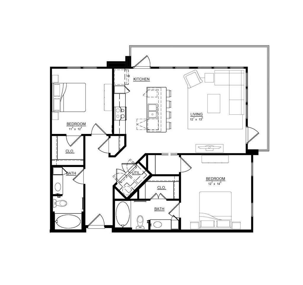 2 Dormitorios, 2 Baños, 1116 pies²Galería del Modelo