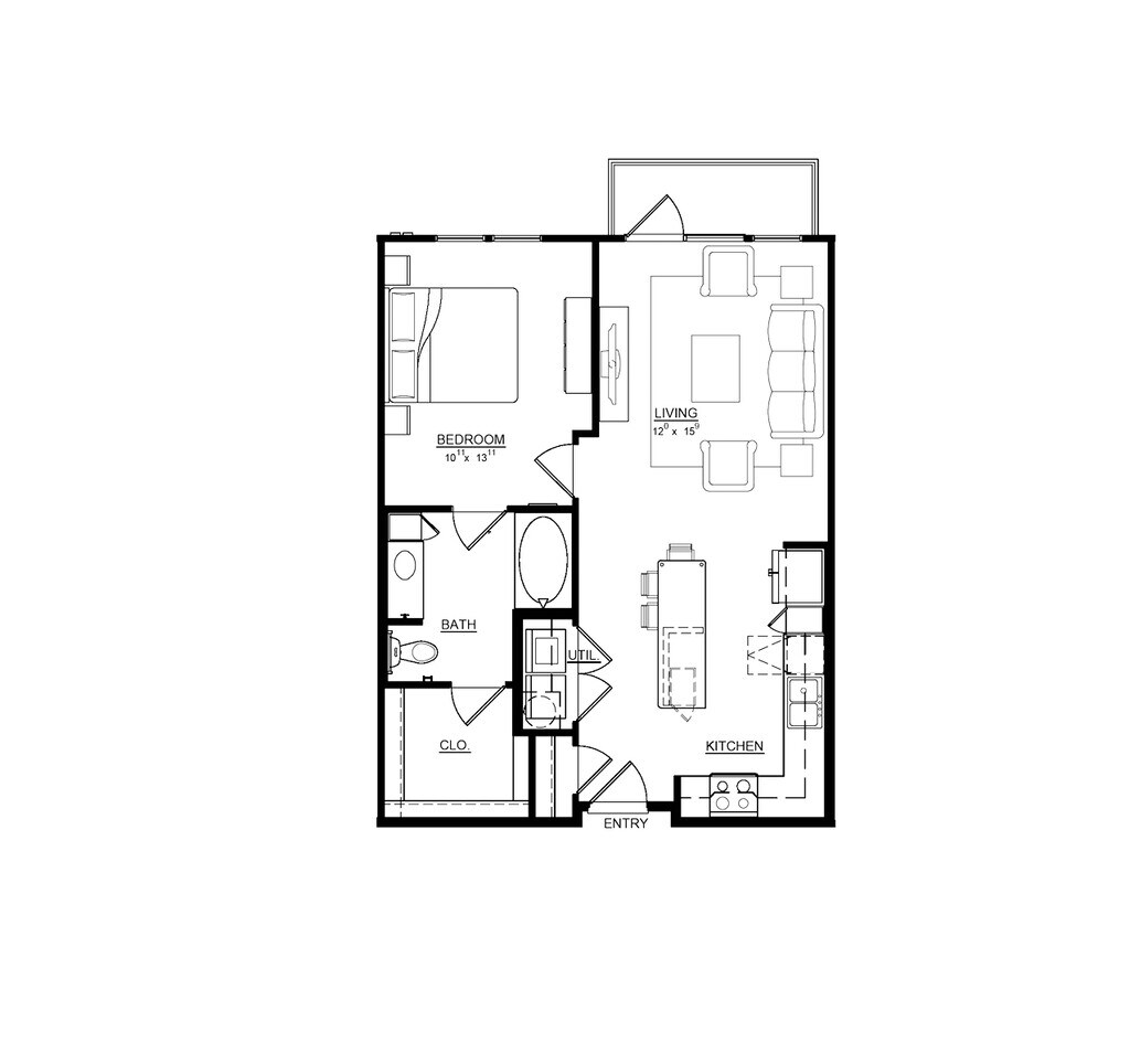 1 Dormitorio, 1 Baño, 837 pies²Galería del Modelo