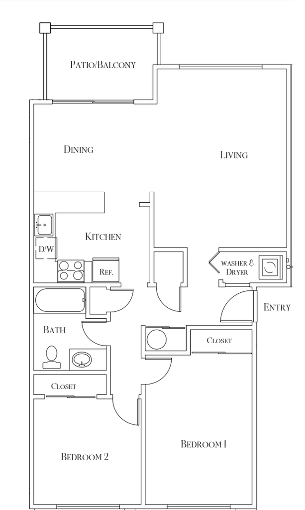 2 Dormitorios, 1 Baño, 800 pies²Galería del Modelo