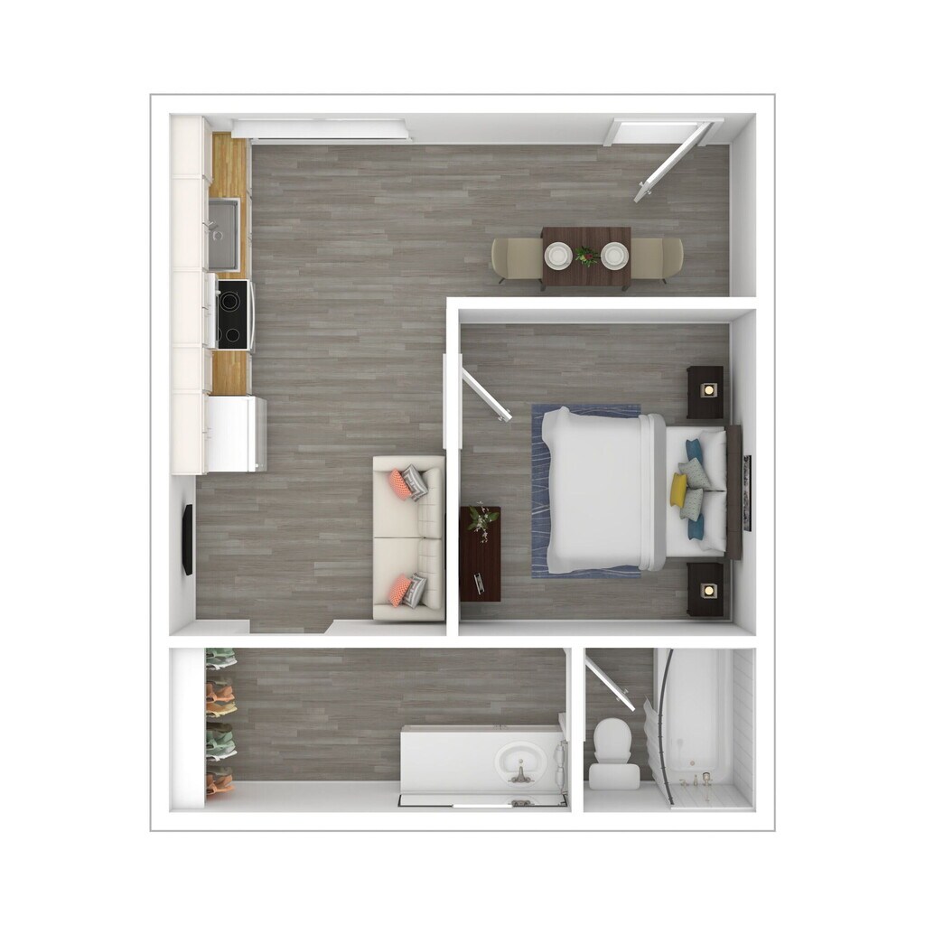 Small Studio - Plano 1 Los planos son representaciones artísticas. Todas las dimensiones son aproximadas. El producto y las especificaciones reales pueden variar en tamaño o detalle. No todas las características están disponibles en cada vivienda en alquiler. Por favor, consulta con un representante para obtener más detalles.