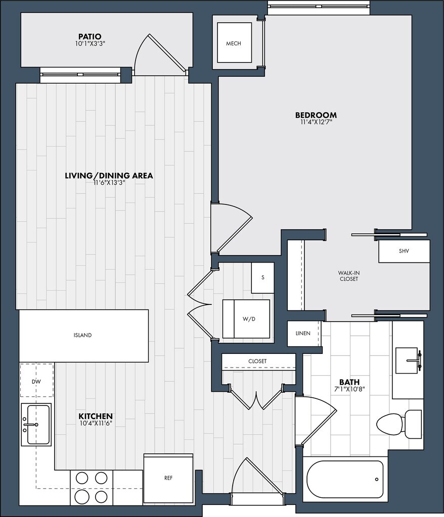 1 Dormitorio, 1 Baño, 724 pies²Precio Mensual TotalDisponible Nov 23El más grandeEsta opción tiene las unidades más grandes para este modeloGalería del Modelo