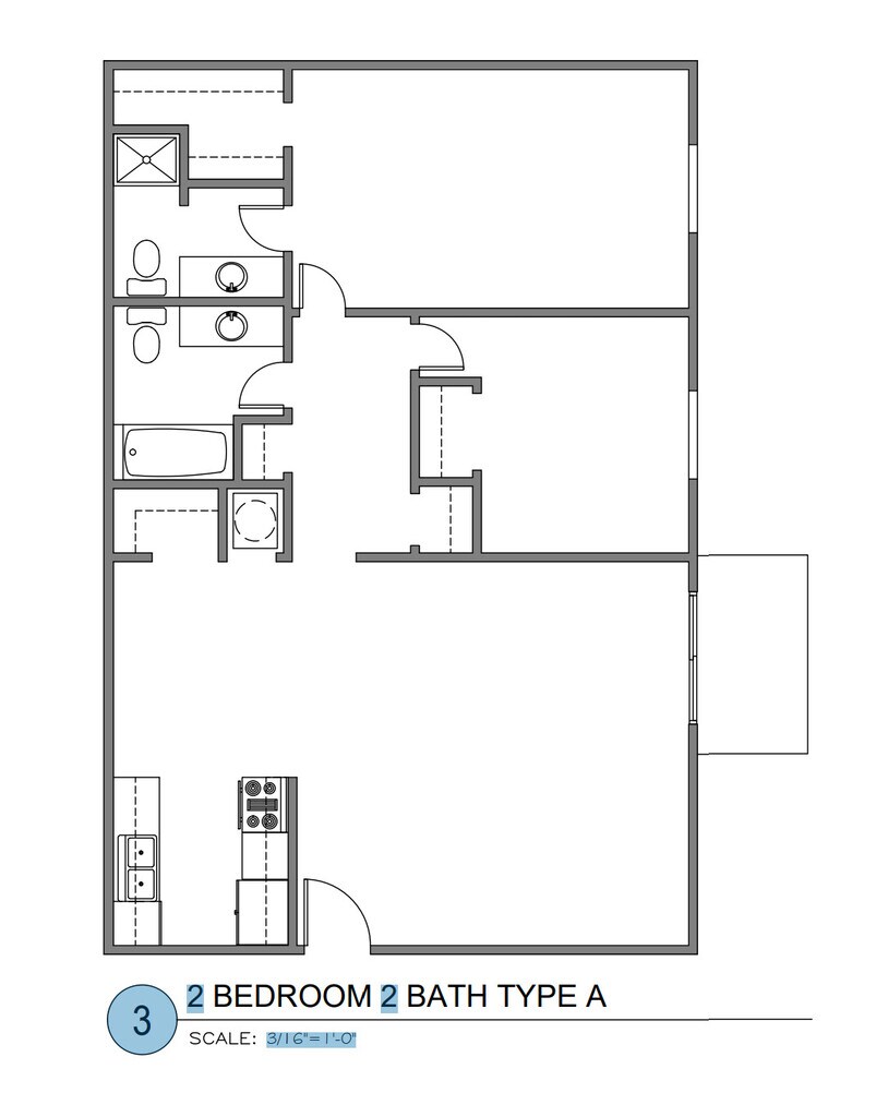 Modelo de apartamento: 2 BR - A$1,3152 Dormitorios, 1 Baño, 949 sq ftDisponible December 31, 2025![]()