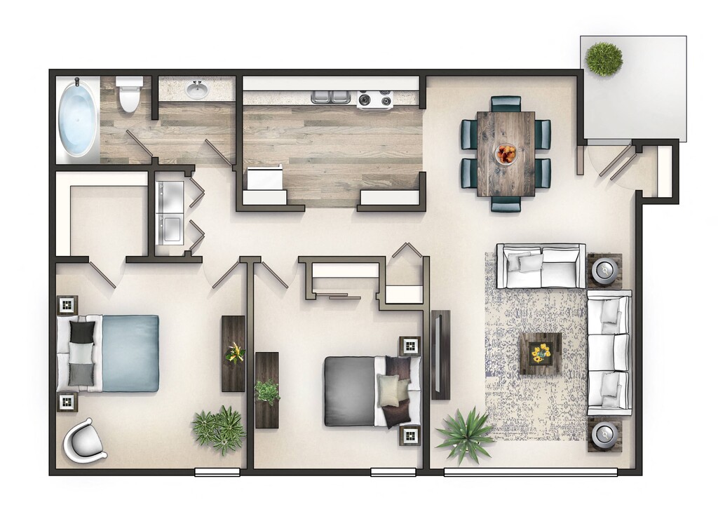 2 Dormitorios, 1 Baño, 1050 pies²Disponible AhoraGalería del Modelo
