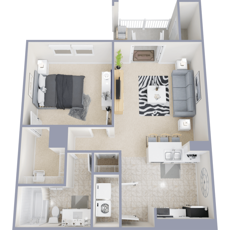 1 Dormitorio, 1 Baño, 671 pies²Disponible AhoraGalería del Modelo