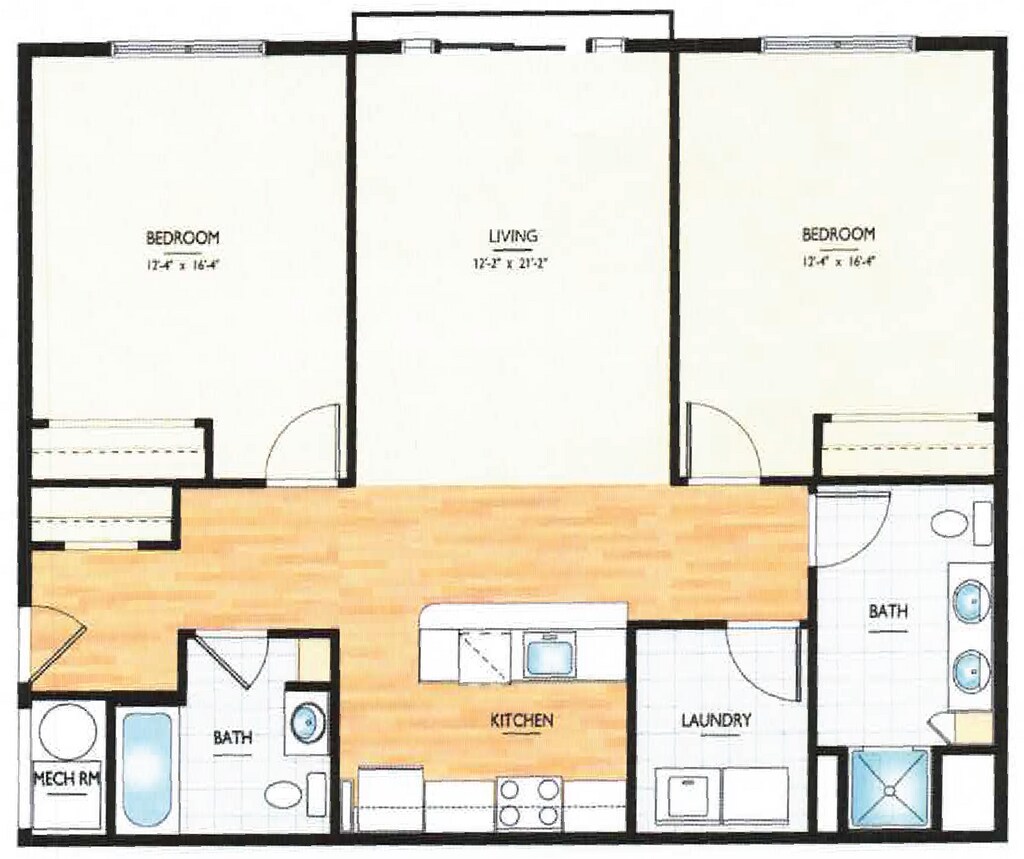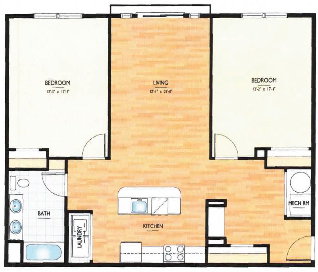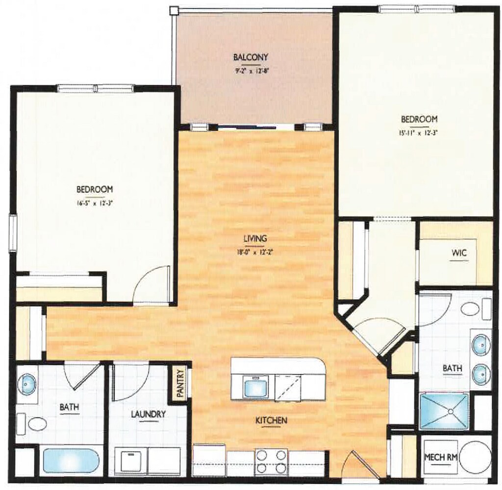 Modelo de apartamento: The HadleyLlame para Precios2 Dormitorios, 1 Baño, 1103 sq ftNo Disponible![]()