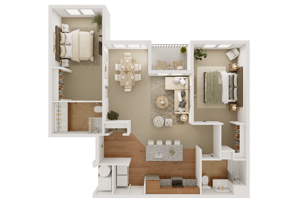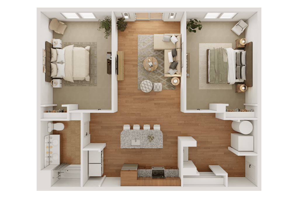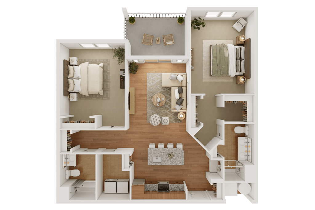 Modelo de apartamento: The GlendonLlame para Precios2 Dormitorios, 2 Baños, 1057 sq ftNo Disponible![]()