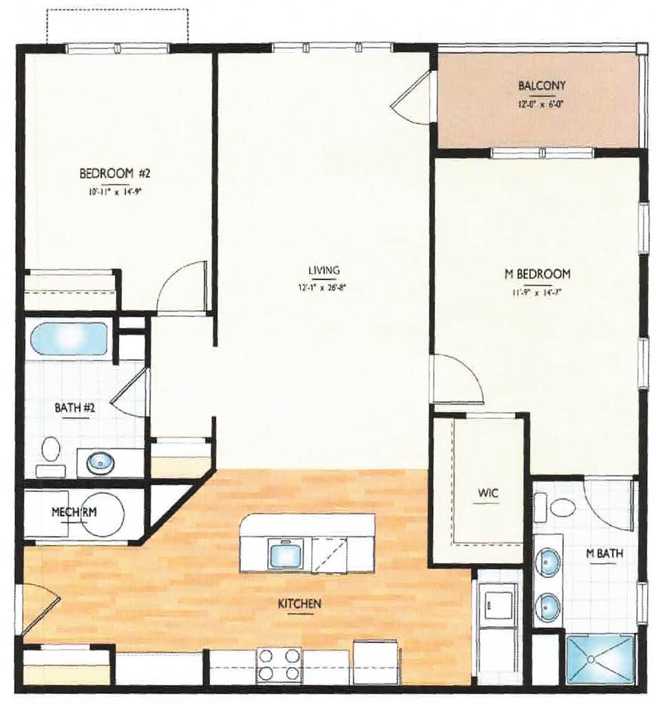 2 Dormitorios, 1 Baño, 1103 pies²Galería del Modelo