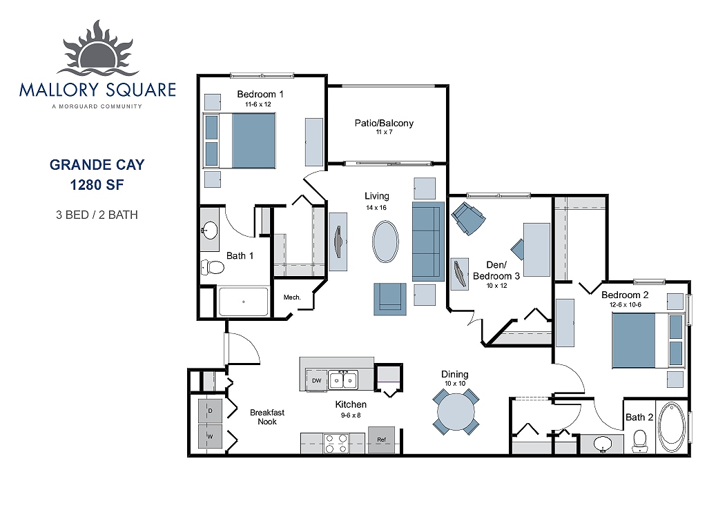 Mallory Square ofrece apartamentos de 1 a 3 Dormitorios desde $1,507 con 748–1,355 pies cuadrados. Aquí está el precio actual y la disponibilidad: