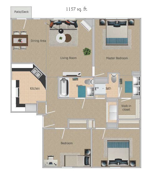 Modelo de apartamento: 2 Bed/2 Bath$1,2302 Dormitorios, 2 Baños, 1012 sq ftDisponible Ahora![]()