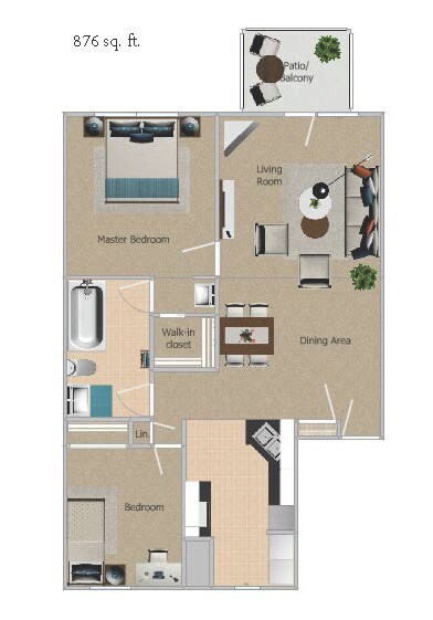 2 Dormitorios, 1 Baño, 876 pies²Galería del Modelo