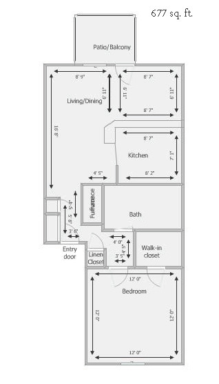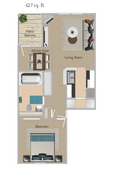 1 Dormitorio, 1 Baño, 677 pies²Galería del Modelo
