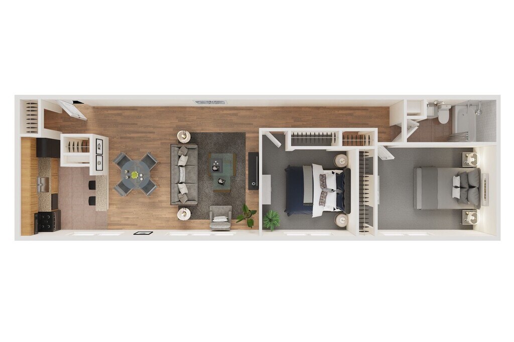 2 Dormitorios, 1 Baño, 682 pies²Disponible AhoraGalería del Modelo