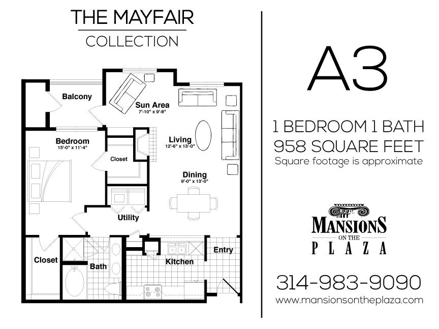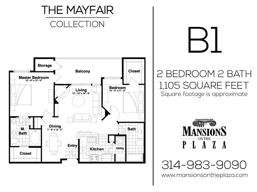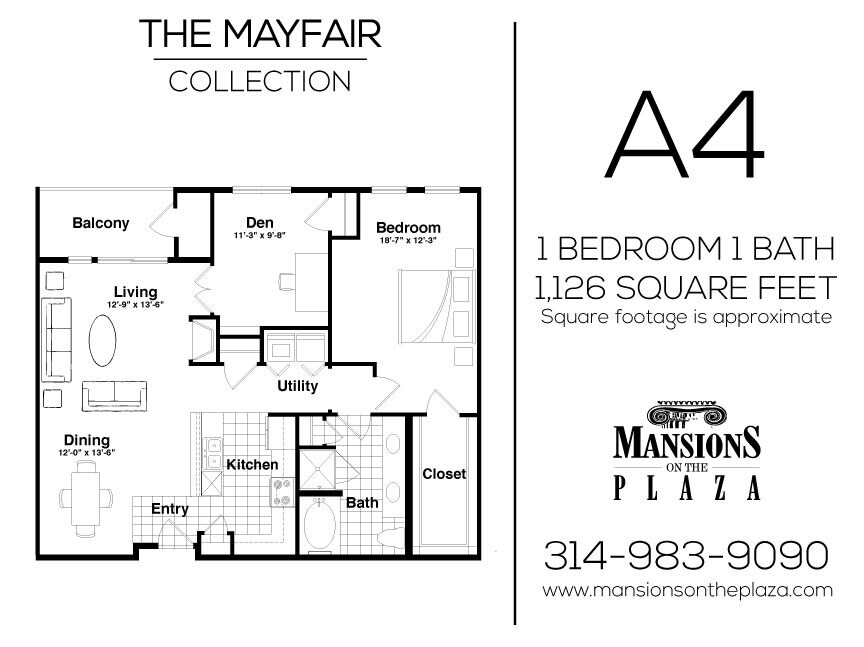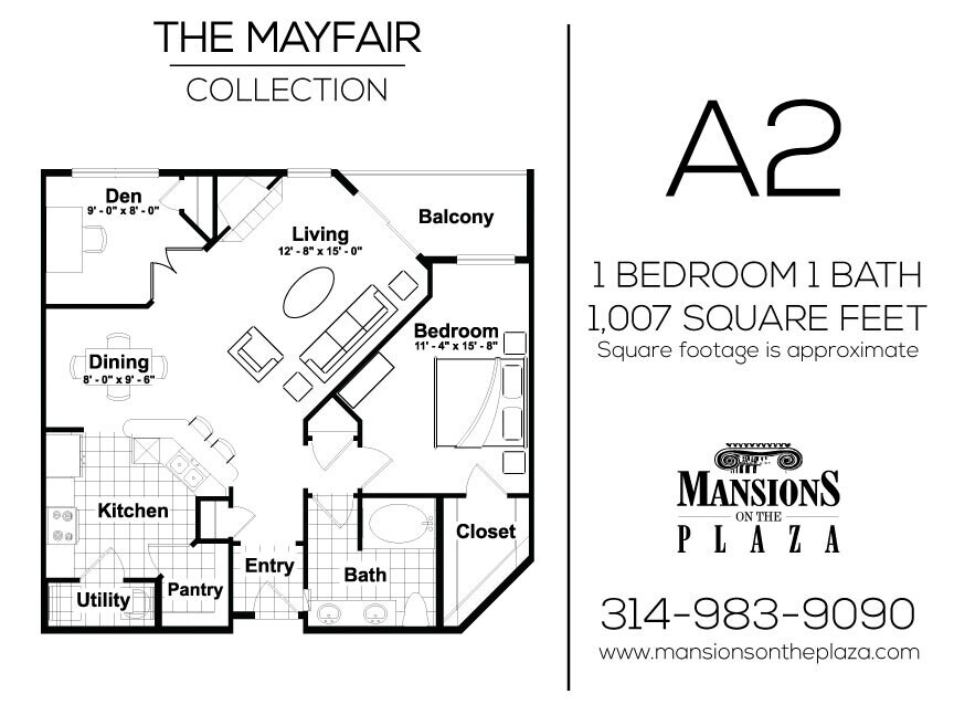 Modelo de apartamento: Mayfair - A1Desde $1,9561 Dormitorio, 1 Baño, 826 sq ftDisponible Ahora![]()