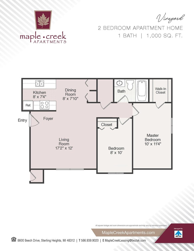 Maple Creek Apartments se encuentra en el Barrio Sterling-Heights y el código postal 48312 de Sterling Heights, MI. Esta comunidad está gestionada profesionalmente por BEZTAK Properties