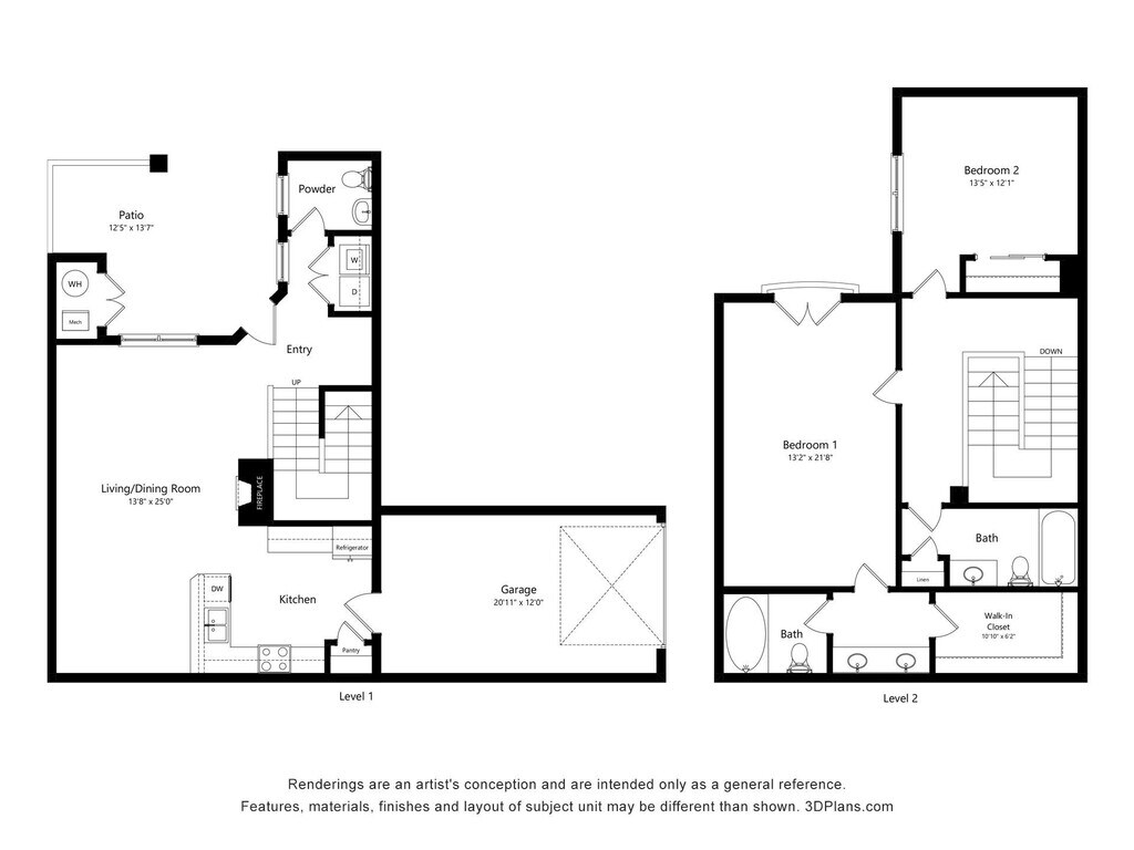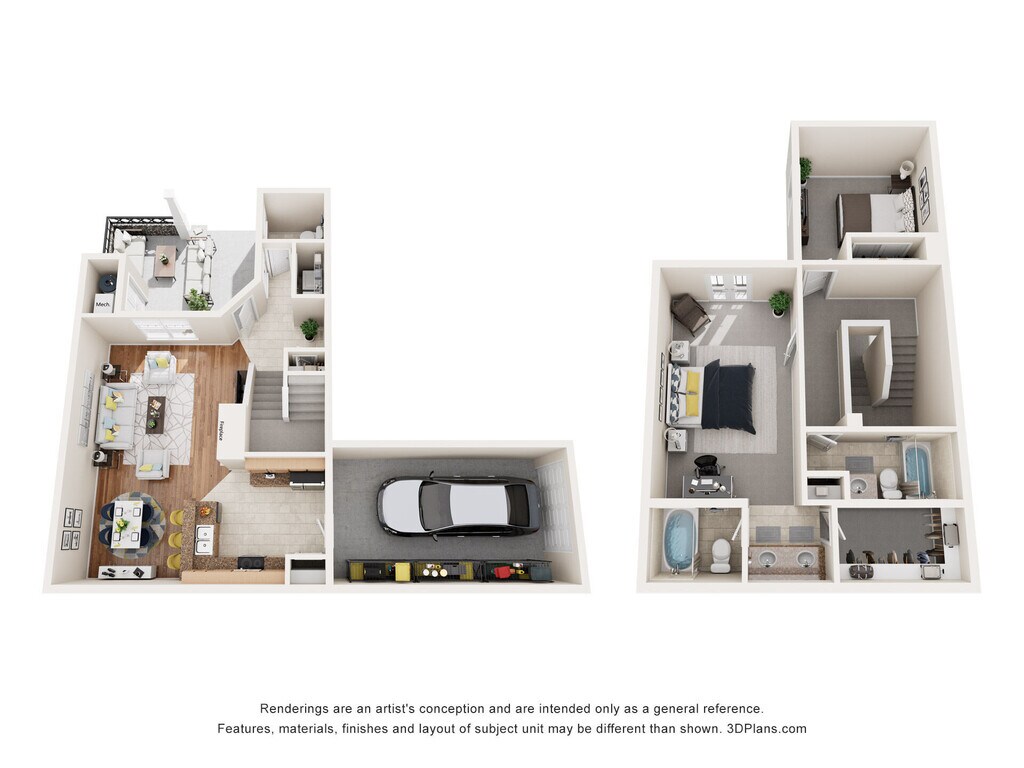 2 Dormitorios, 2.5 Baños, 1279 pies²Disponible AhoraGalería del Modelo