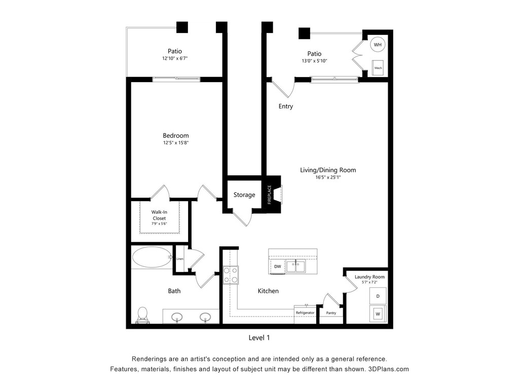 1 Dormitorio, 1 Baño, 970 pies²Disponible AhoraGalería del Modelo