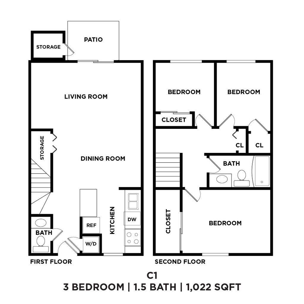 Three Bed 1.5 Bath 1022 Sqft - Plano 1 Unidad de apartamento: 2667BModelo de apartamento: Three Bed 1.5 Bath 1022 SqftLlame para Precios3 Dormitorios, 1.5 Baños, 1022 sq ftDisponible December 19, 2025