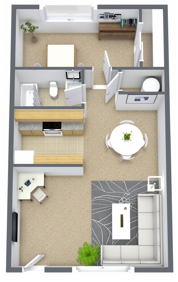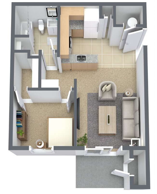 1 Dormitorio, 1 Baño, 500 pies²Disponible AhoraGalería del Modelo