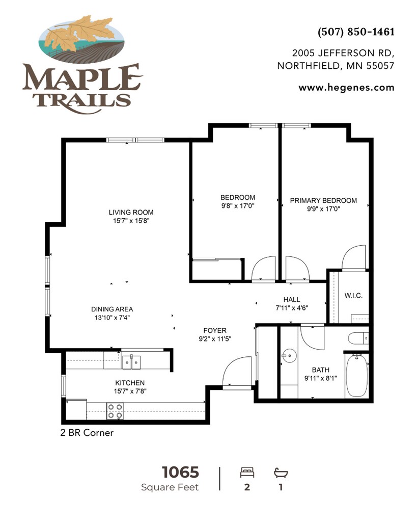 Modelo de apartamento: MT 2 BR CORNER2 Dormitorios, 1 Baño, 1065 sq ftDisponible March 20, 2026PlanosFotos![]()