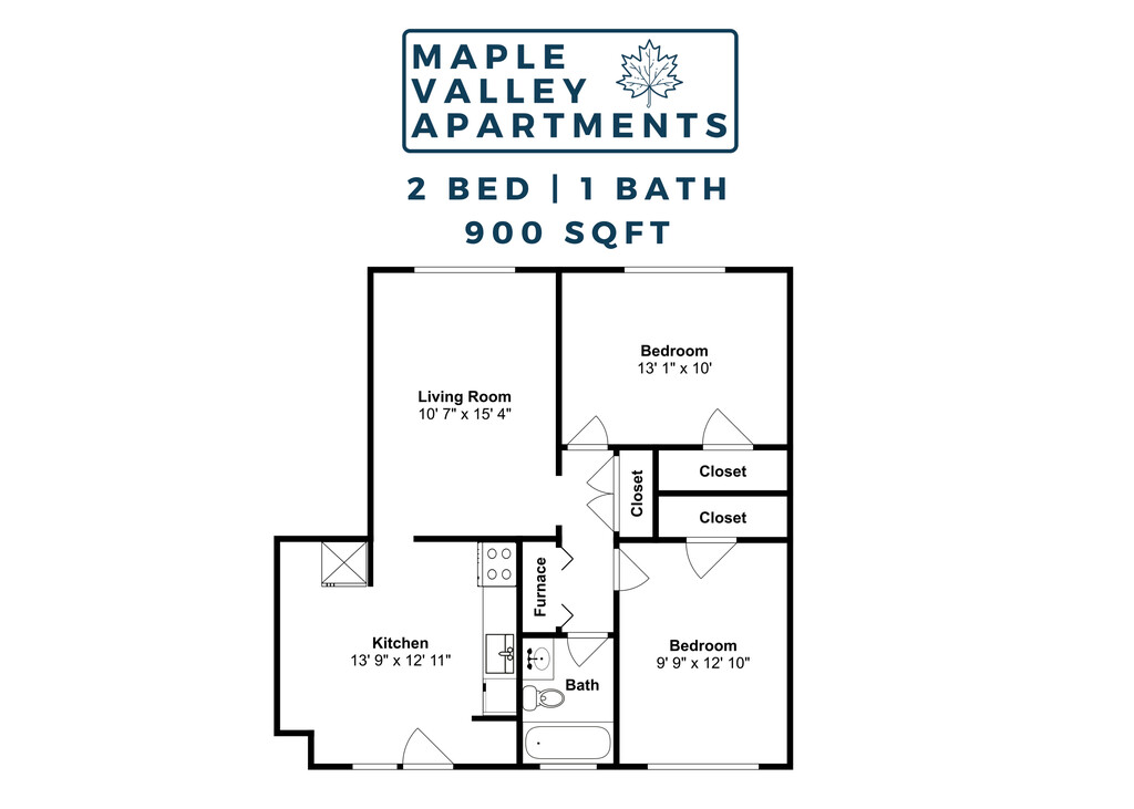 Modelo de apartamento: Maple Valley 2 BedroomDesde $1,1502 Dormitorios, 1 Baño, 900 sq ftDisponible AhoraPlanosFotos![]()