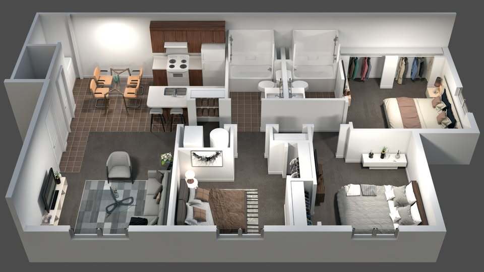 3 Dormitorios, 2 Baños, 1250 pies²Disponible AhoraGalería del Modelo
