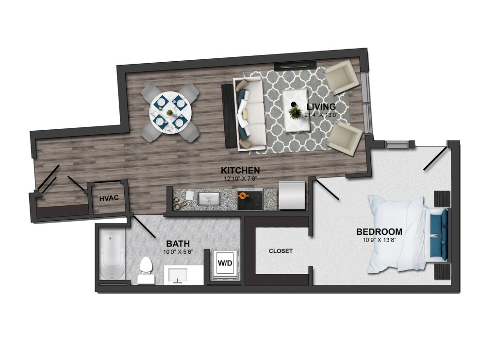 1 Dormitorio, 1 Baño, 577-605 pies²Disponible AhoraGalería del Modelo