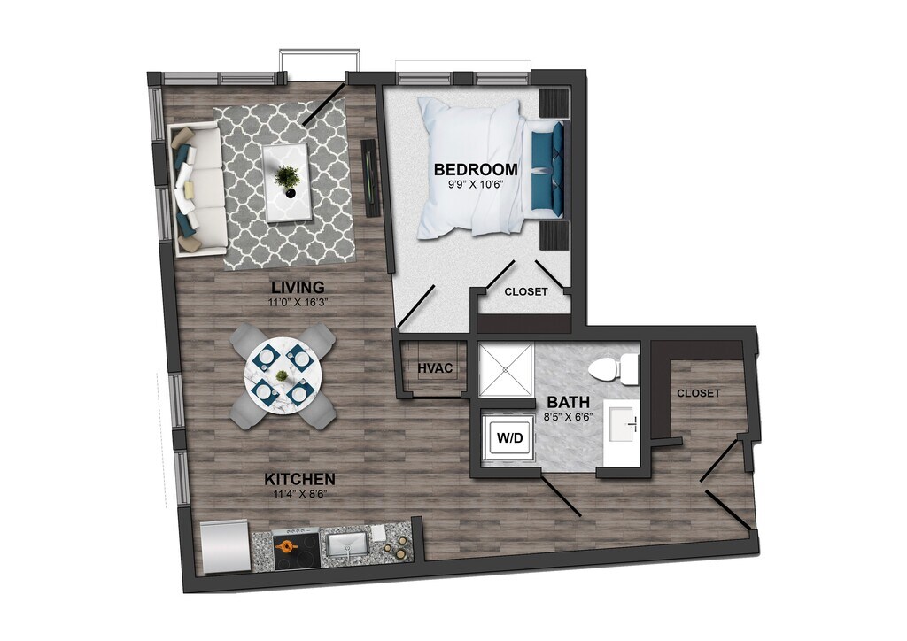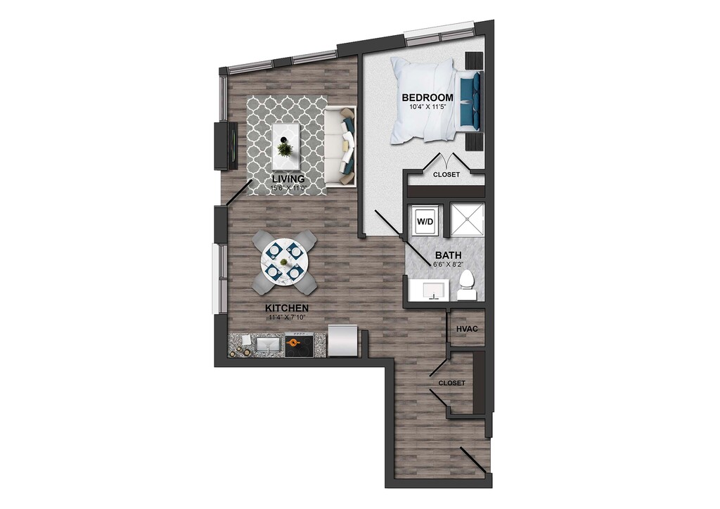 1 Dormitorio, 1 Baño, 713 pies²Disponible AhoraGalería del Modelo