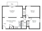 Modelo de apartamento: Two Bedroom- 934 sqftDesde $1,3852 Dormitorios, 1 Baño, 934 sq ftDisponible AhoraLos planos son representaciones artísticas. Todas las dimensiones son aproximadas. El producto y las especificaciones reales pueden variar en tamaño o detalle. No todas las características están disponibles en cada vivienda en alquiler. Por favor, consulta con un representante para obtener más detalles.