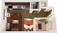 1 Dormitorio, 1 Baño, 572 pies²Disponible August 20, 2026Galería del Modelo