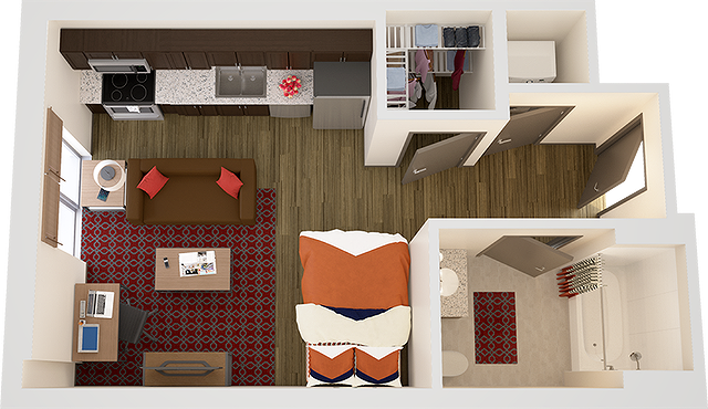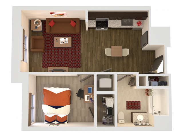 STDIO - Plano 1 Unidad de apartamento: StandardModelo de apartamento: STDIOEstudio, 1 Baño, 416 sq ftDisponible August 20, 2026Studio XL