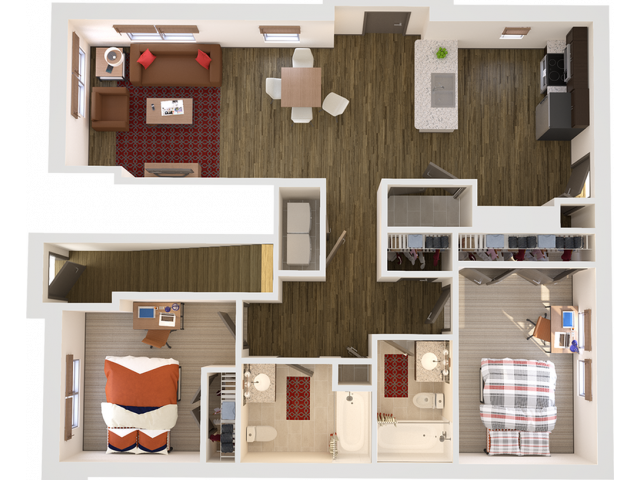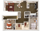 2x2F - Plano 1 Unidad de apartamento: StandardModelo de apartamento: 2x2F2 Dormitorios, 2 Baños, 1080 sq ftDisponible August 20, 20262x2TH
