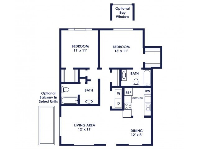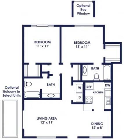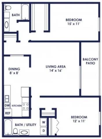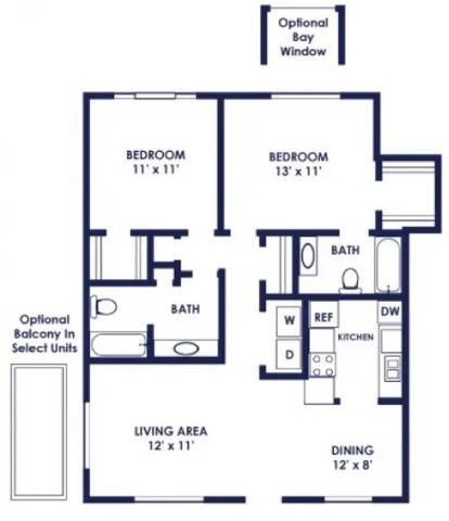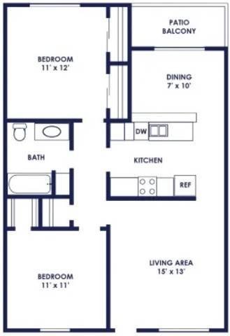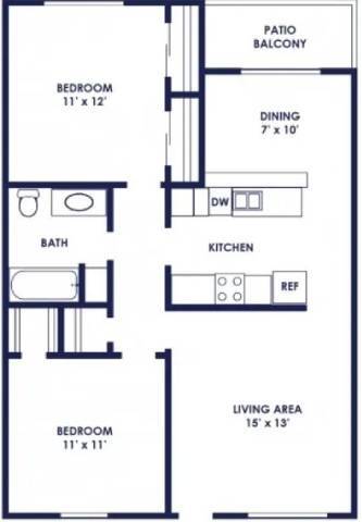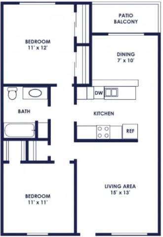 Modelo de apartamento: A2Desde $9151 Dormitorio, 1 Baño, 660 sq ftDisponible Ahora![]()