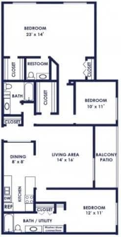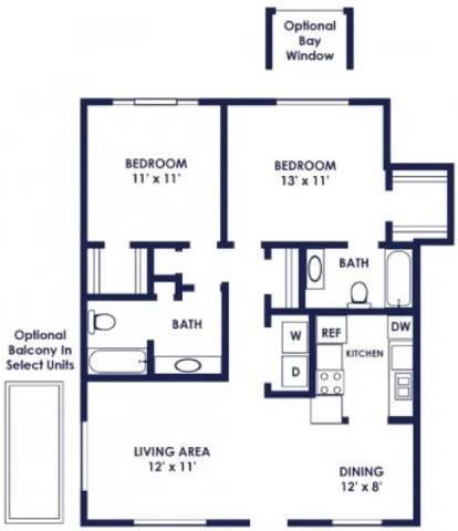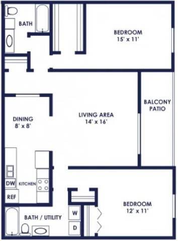 Modelo de apartamento: A3Desde $9351 Dormitorio, 1 Baño, 750 sq ftDisponible Ahora![]()