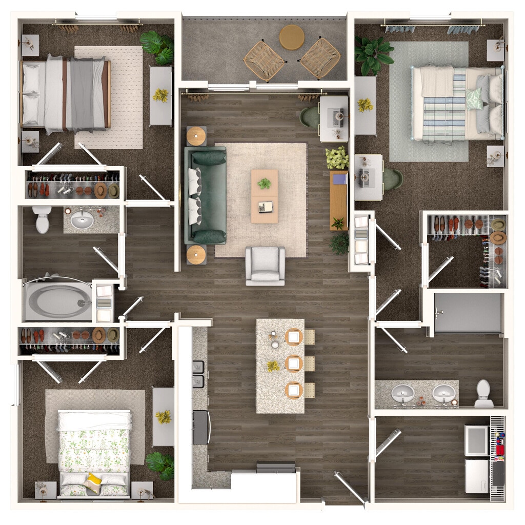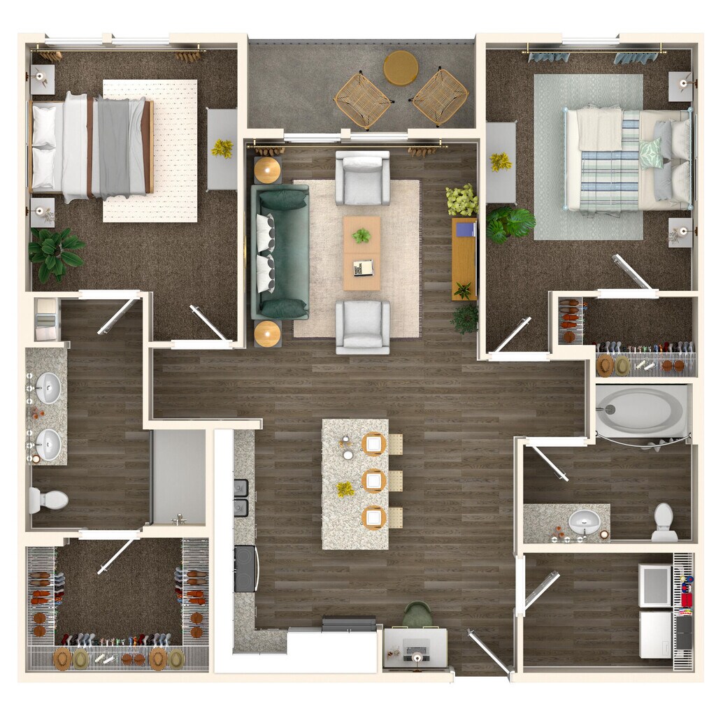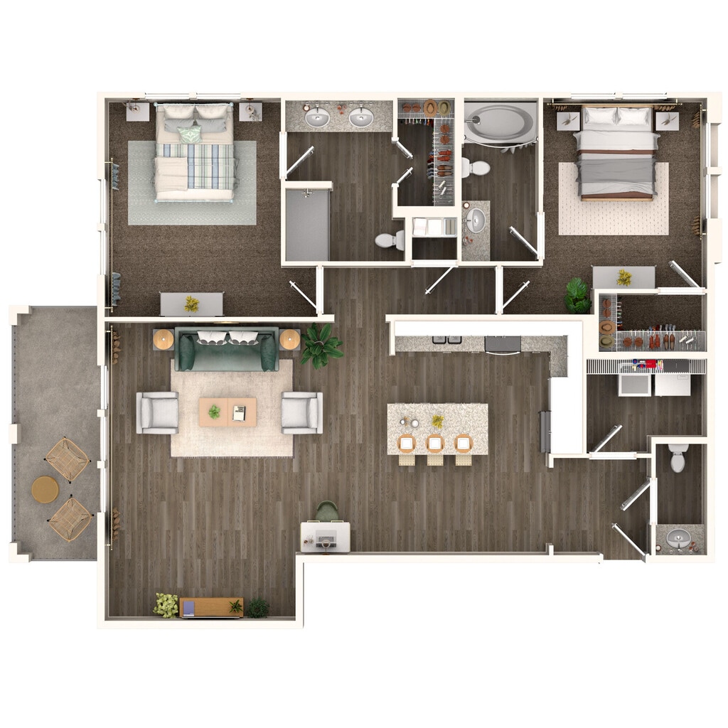 Modelo de apartamento: B1cDesde $1,6892 Dormitorios, 2 Baños, 1176 sq ftDisponible Ahora![]()