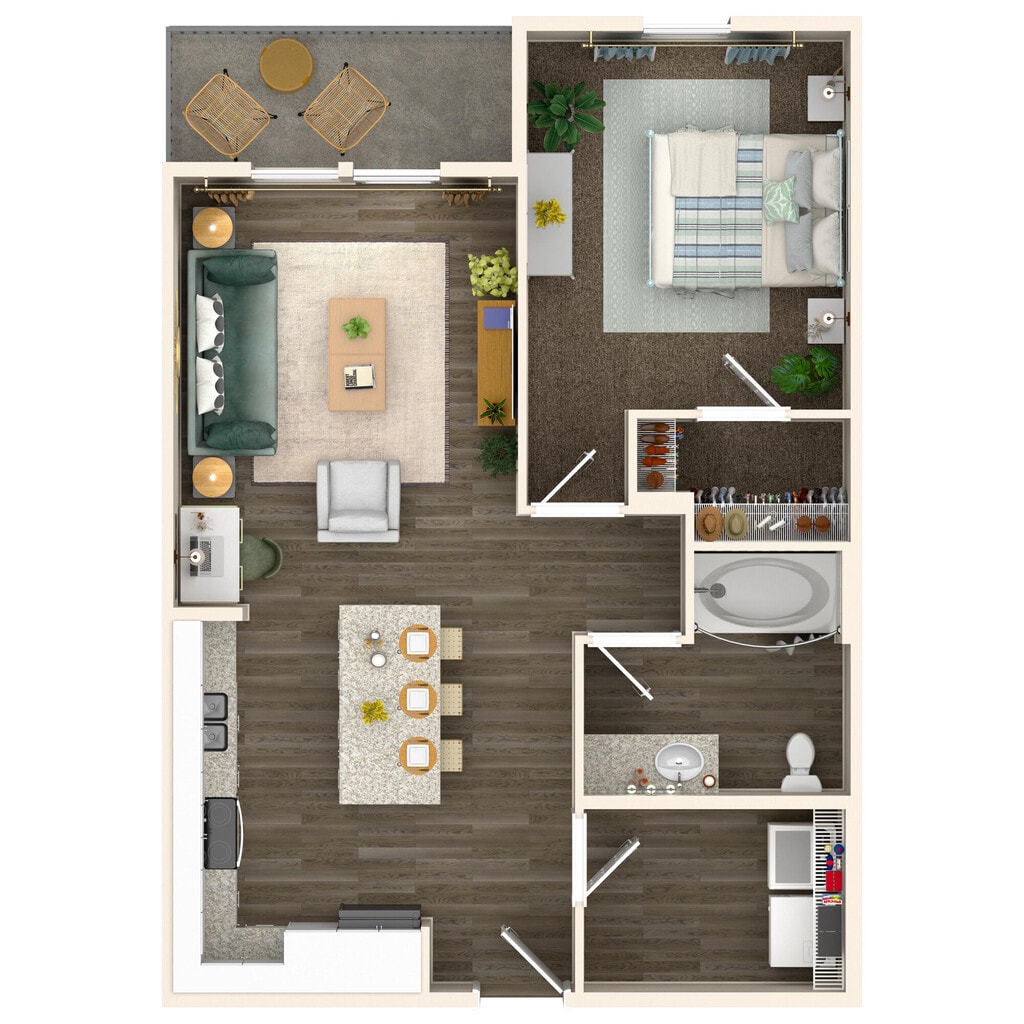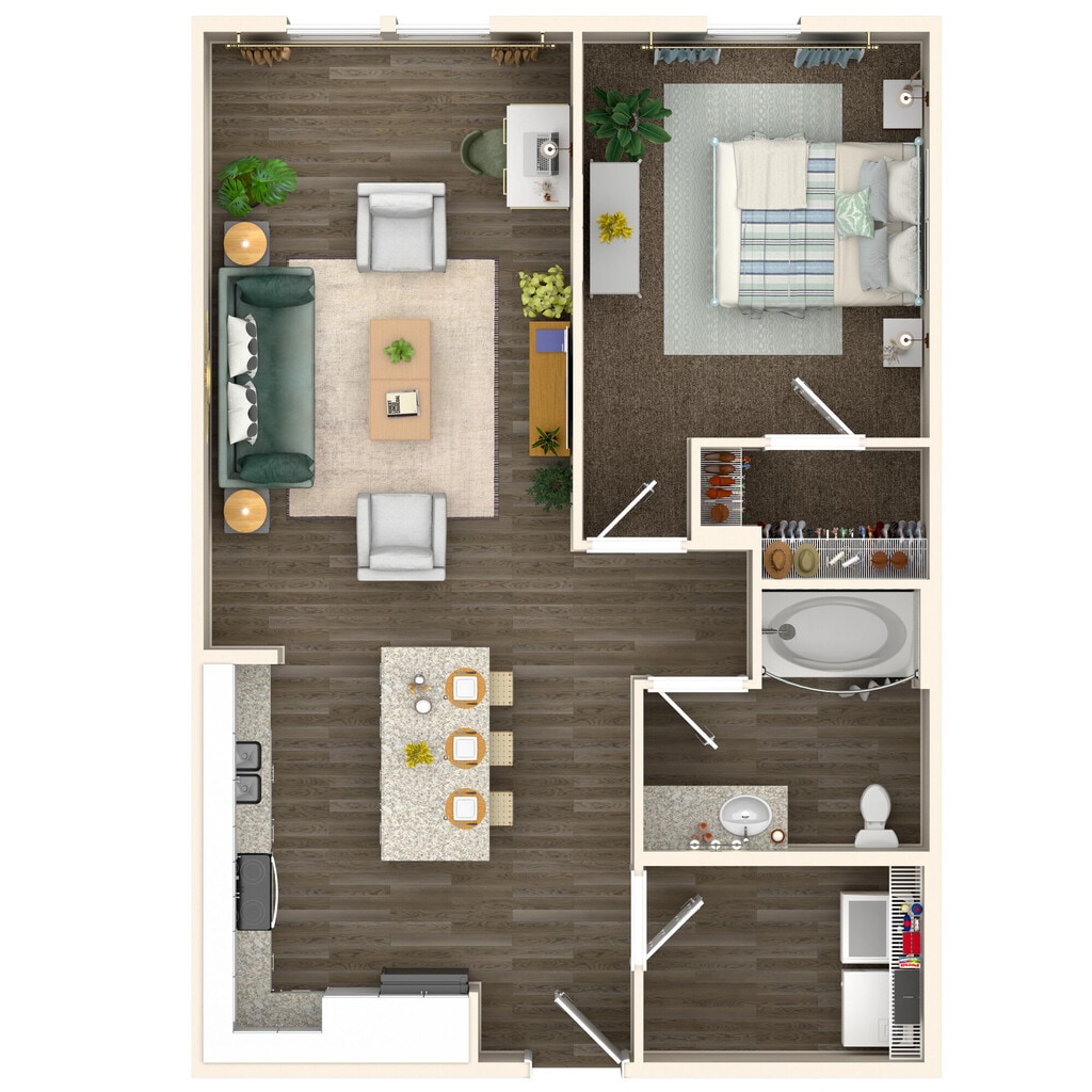 Modelo de apartamento: A1Desde $1,3991 Dormitorio, 1 Baño, 756 sq ftDisponible Ahora![]()