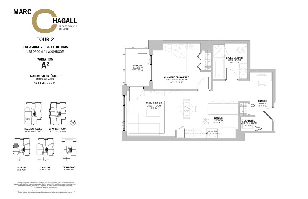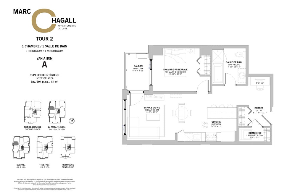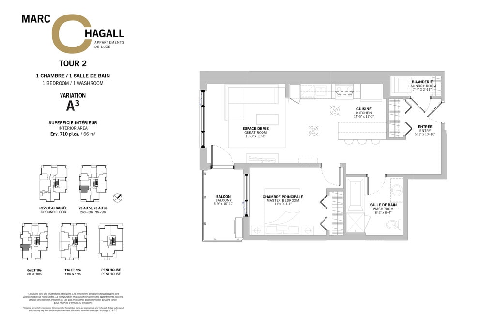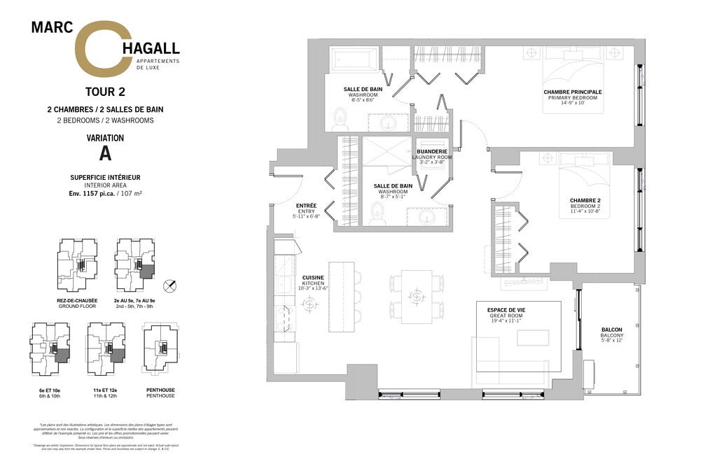 Marc Chagall ofrece apartamentos de 1 a 3 Dormitorios desde $1,800 con 680–1,720 pies cuadrados. Aquí está el precio actual y la disponibilidad:
