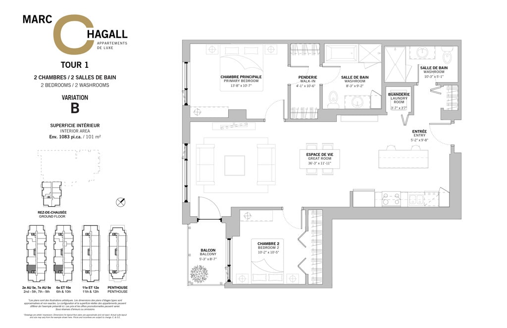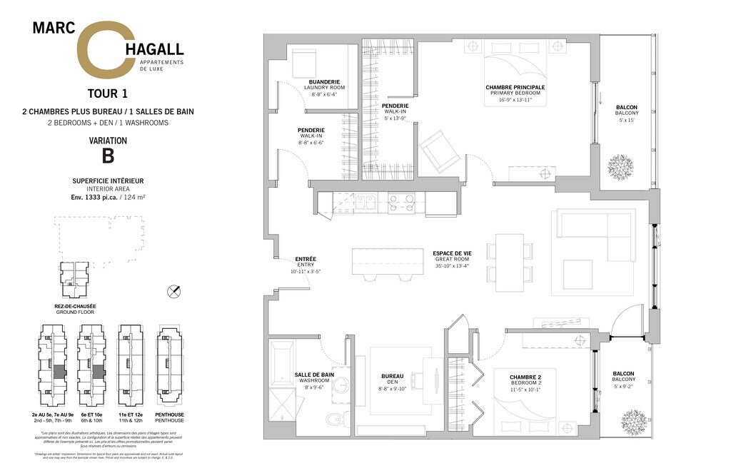 (Tour 1) 3 ½ Plus Bureau E - Plano 2 ![]()