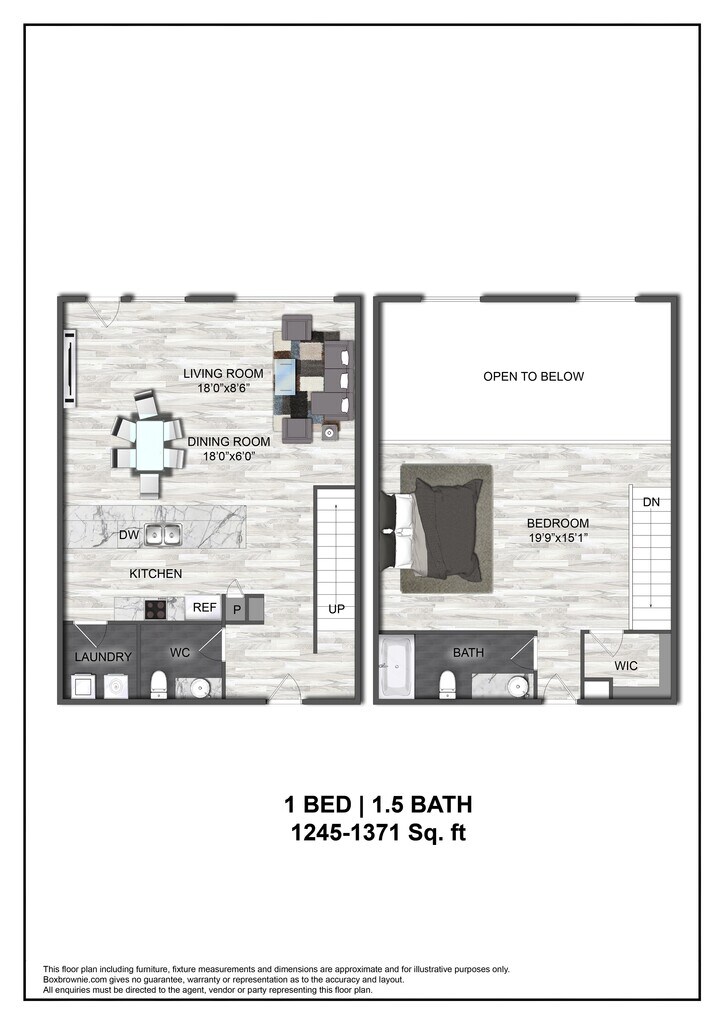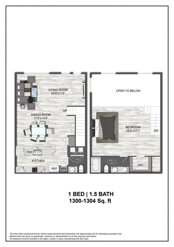 1 Dormitorio, 1 Baño, 1150-1205 pies²Disponible AhoraGalería del Modelo