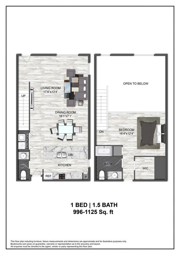 1 Dormitorio, 1.5 Baños, 996-1024 pies²Disponible AhoraGalería del Modelo