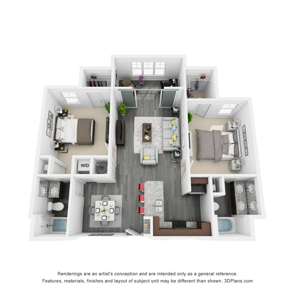 Modelo de apartamento: Key WestDesde $1,5952 Dormitorios, 2 Baños, 1099 sq ftDisponible Ahora![]()