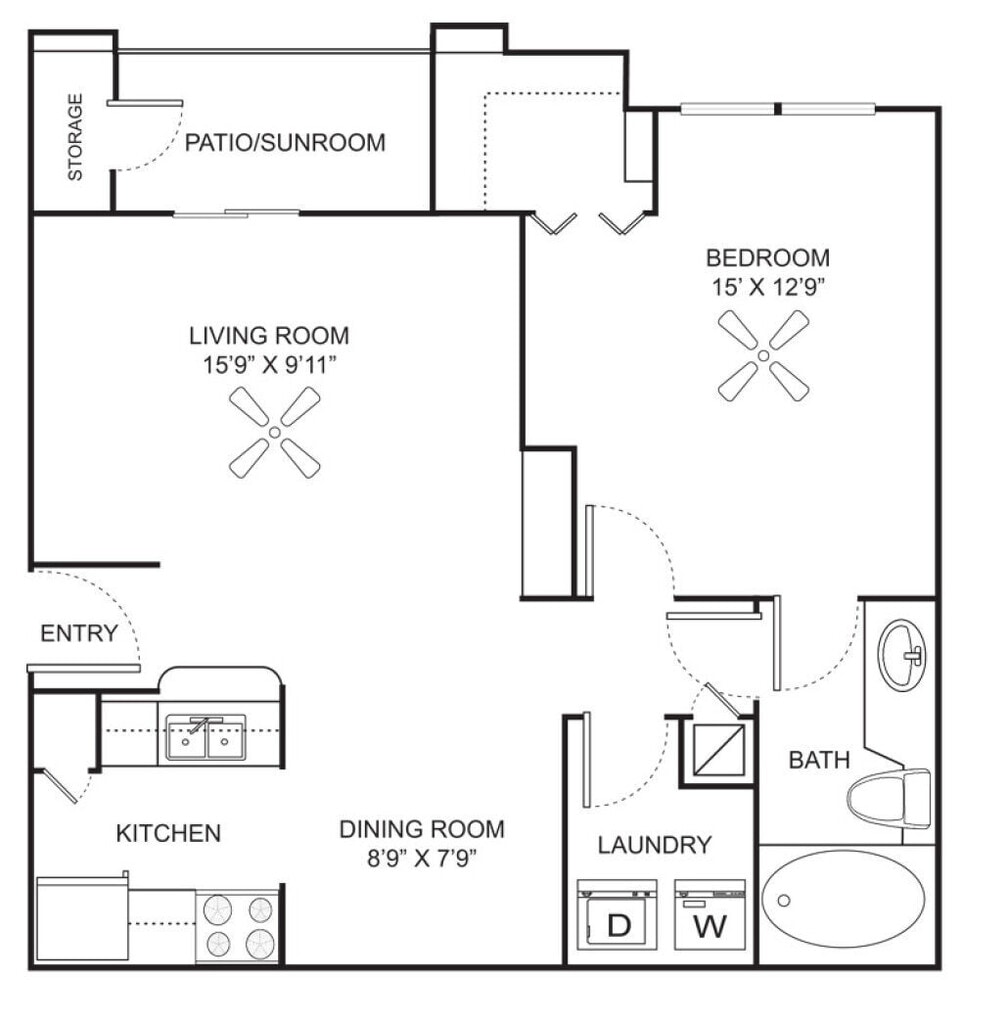 Modelo de apartamento: A1RDesde $2,4351 Dormitorio, 1 Baño, 890 sq ftDisponible Ahora![]()