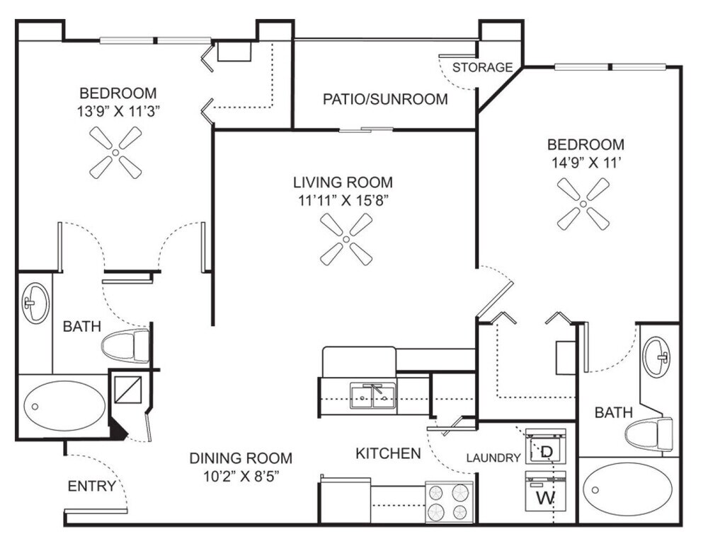 2 Dormitorios, 2 Baños, 1189 pies²Disponible AhoraGalería del Modelo