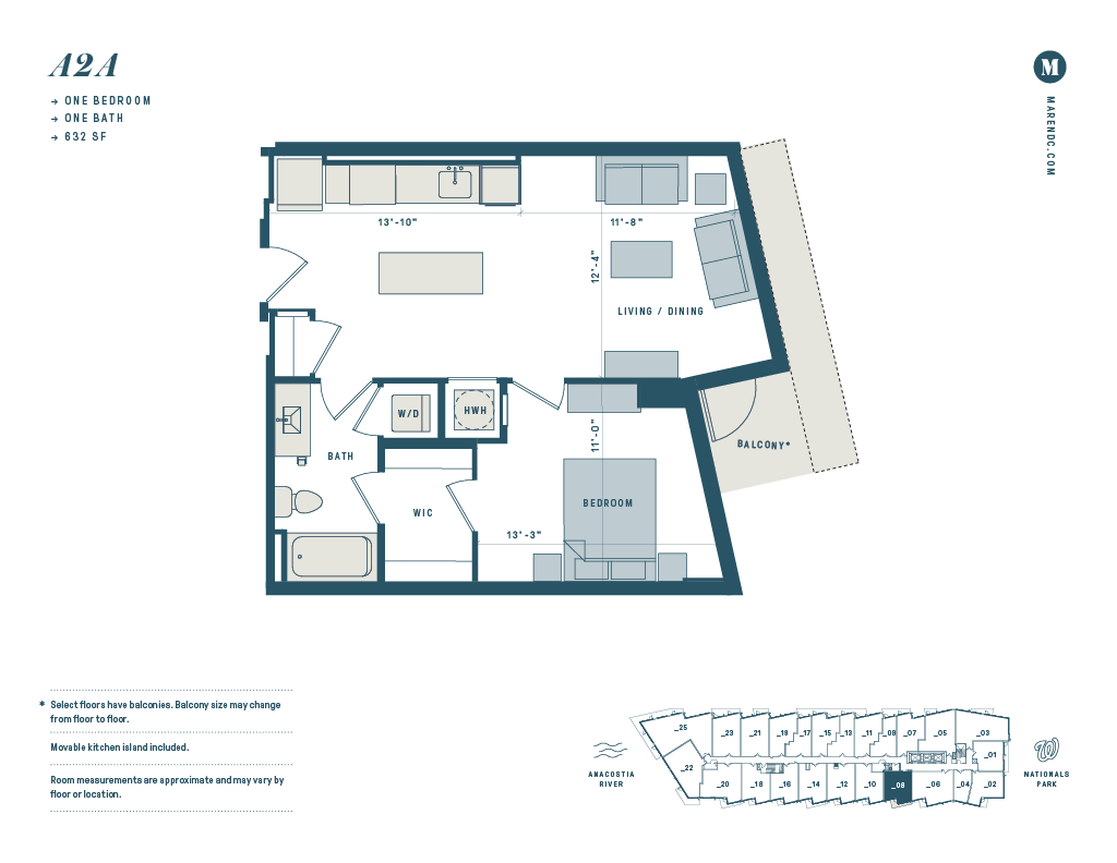 Fecha Disponibilidad Unidad Pies² No Disponible A2A 632 pies² Modelo de apartamento: A2A1 Dormitorio, 1 Baño, 632 sq ftNo DisponibleA2A - Plano 1 Plano: A2A