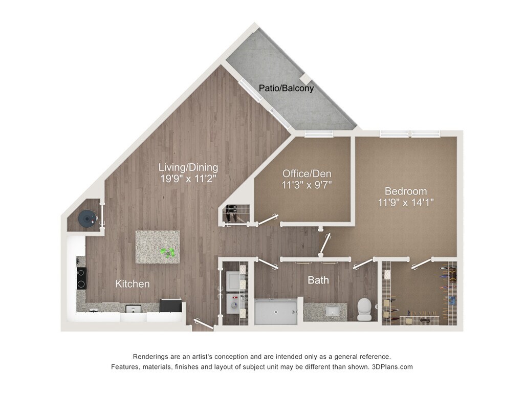 HeyDay - Plano 3 Unidad de apartamento: 142Modelo de apartamento: HeyDayDesde $1,7911 Dormitorio, 1 Baño, 1001 sq ftDisponible AhoraLarkspur