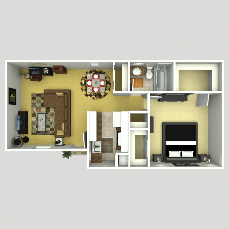 Modelo de apartamento: A1Desde $8201 Dormitorio, 1 Baño, 560 sq ftDisponible Ahora![]()