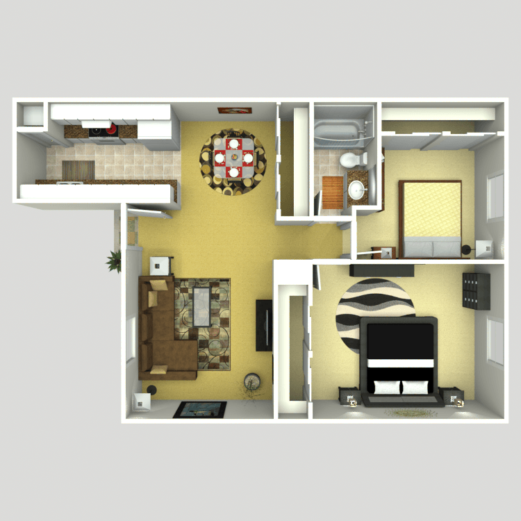 2 Dormitorios, 1 Baño, 760 pies²Disponible AhoraGalería del Modelo